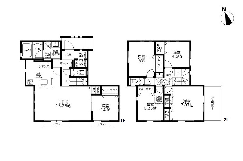 1階 LDK18.2畳 / 1階 洋室4.5畳 / 2階 洋室7.8畳 / 2階 洋室6.0畳 / 2階 洋室5.2畳 / 2階 洋室4.5畳 |
