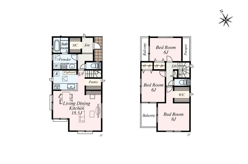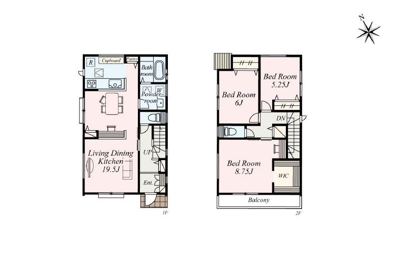 1階 LDK19.5畳 / 2階 洋室8.7畳 / 2階 洋室6.0畳 / 2階 洋室5.2畳 |