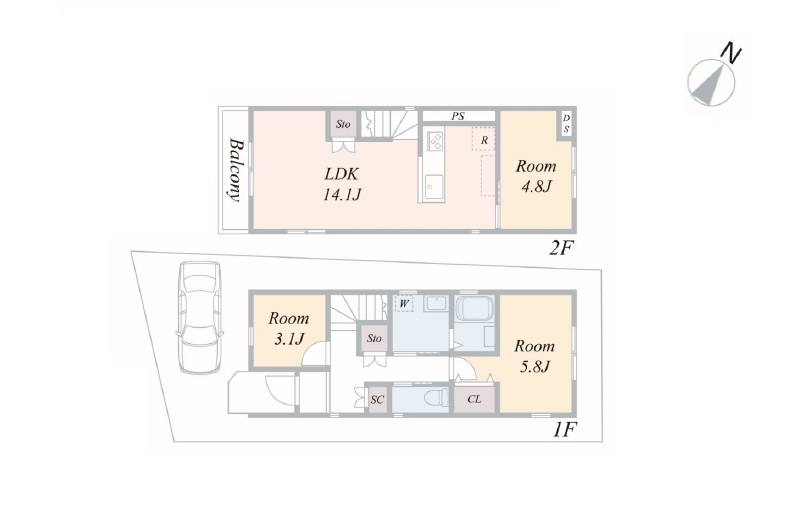 | 間取内容 | 1階 LDK14.29畳 / 2階 洋室7畳 / 2階 洋室5.75畳 / 2階 洋室4.87畳 | ||