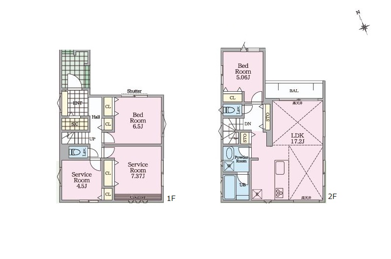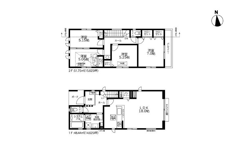 1階 LDK18.0畳 / 2階 洋室7.0畳 / 2階 洋室5.2畳 / 2階 洋室5.1畳 / 2階 洋室5.0畳 |