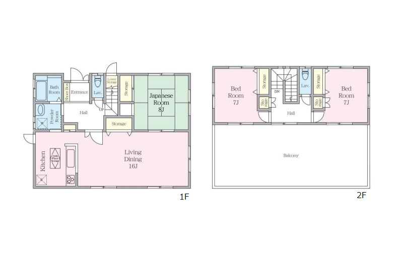 1階 LDK16.0畳 / 1階 和室8.0畳 / 2階 洋室7.0畳 2部屋 |