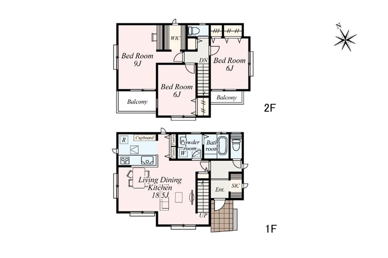 1階 LDK18.5畳 / 2階 洋室9畳 / 2階 洋室6畳 2部屋 |