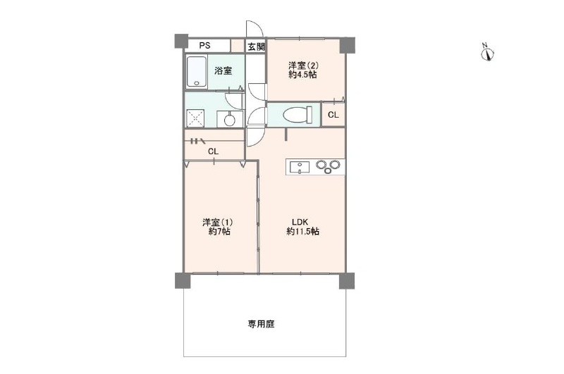 | 間取内容 | LDK11.5畳 / 洋室7畳 / 洋室4.5畳 | ||