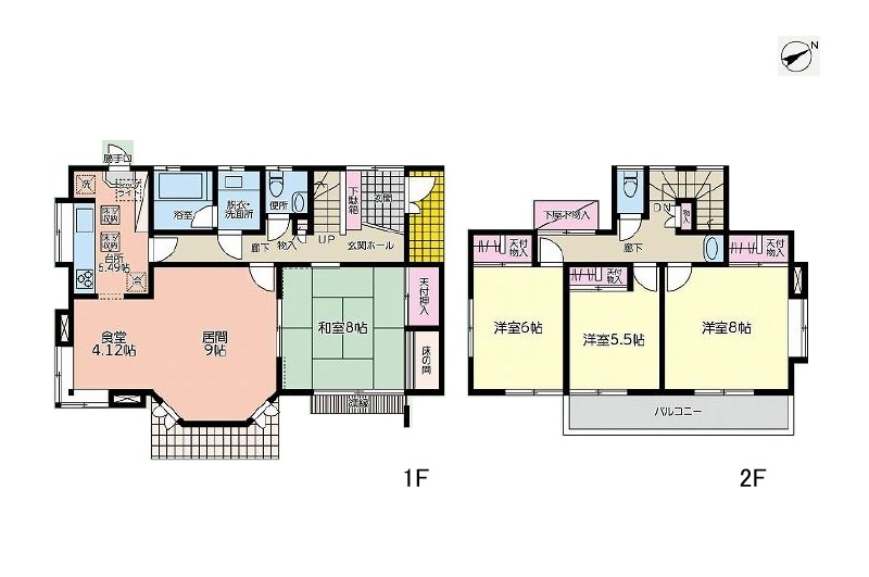 1階 LD13.1畳 / 1階 K5.4畳 / 1階 和室8畳 / 2階 洋室8畳 / 2階 洋室6畳 / 2階 洋室5.5畳 |