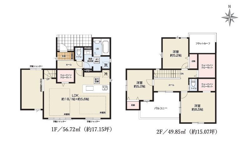 1階 LDK23.7畳 / 2階 洋室8.5畳 / 2階 洋室5.2畳 2部屋 |