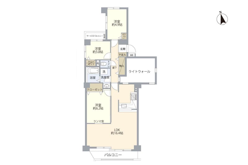 LDK16.4畳 / 洋室6.2畳 / 洋室4.9畳 / 洋室3.8畳 |