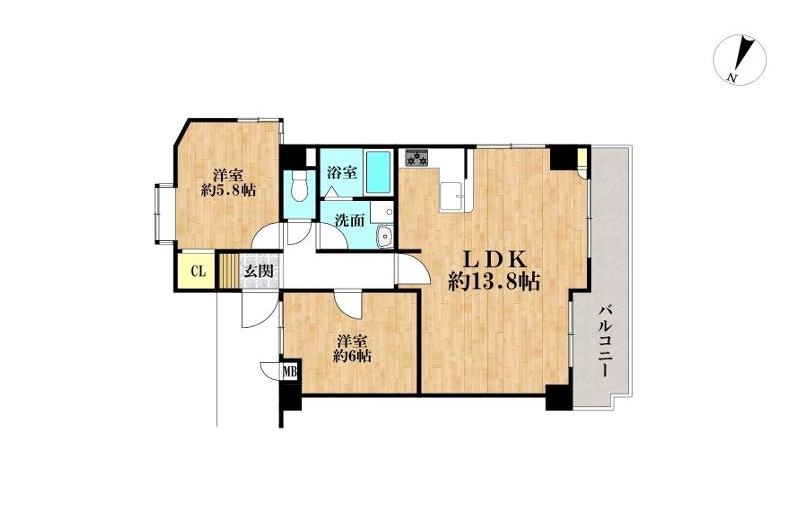 | 間取内容 | LDK13.8畳 / 洋室6.0畳 / 洋室5.8畳 | ||