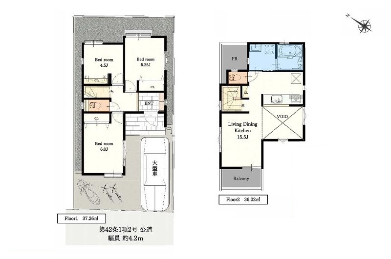 | 間取内容 | 1階 洋室6.0畳 / 1階 洋室5.2畳 / 1階 洋室4.5畳 / 2階 LDK15.5畳 | ||