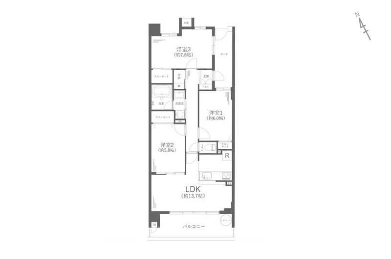 LDK13.7畳 / 洋室6.0畳 / 洋室5.8畳 / 洋室7.6畳 |
