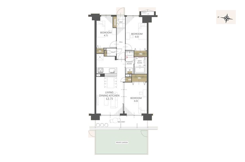 LDK12.7畳 / 洋室6.0畳 2部屋 / 洋室4.7畳 |