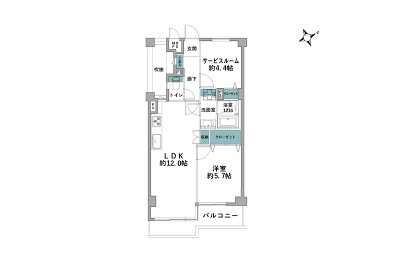LDK12畳 / 洋室5.7畳 / S4.4畳 |