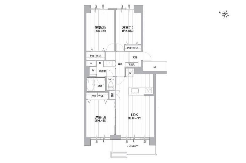 | 間取内容 | LDK13.7畳 / 洋室6.4畳 / 洋室5.5畳 / 洋室6.8畳 | ||