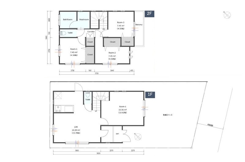 1階 LDK22.5畳 / 1階 和室6.0畳 / 2階 洋室8.0畳 / 2階 洋室4.5畳 2部屋 |
