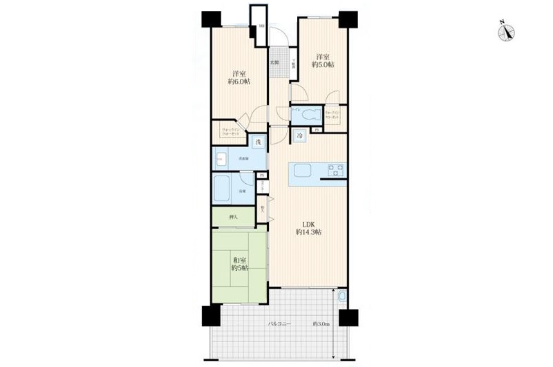 LDK14.3畳 / 和室6.0畳 / 洋室6.0畳 / 洋室5.0畳 |