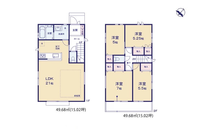 1階 LDK21畳 / 2階 洋室7畳 / 2階 洋室5.5畳 / 2階 洋室5.25畳 / 2階 洋室5畳 |