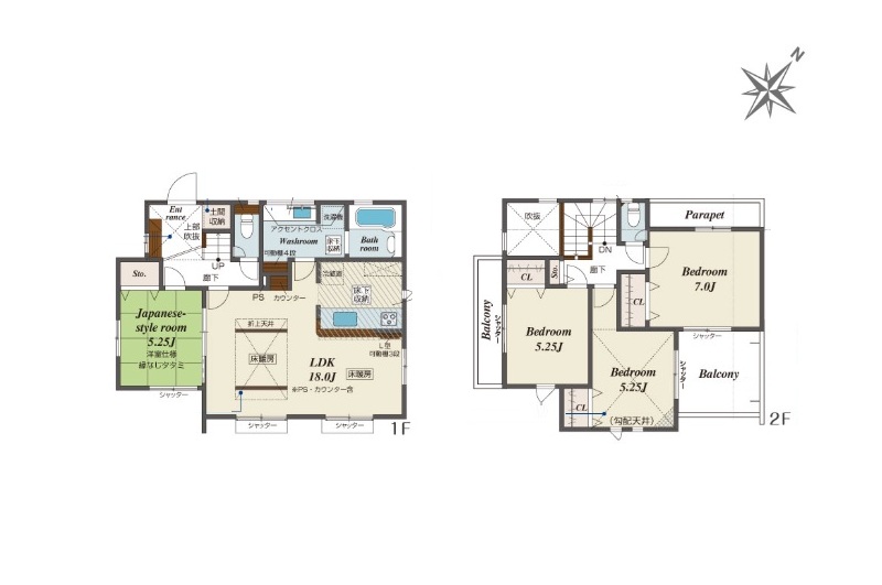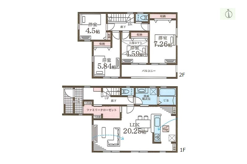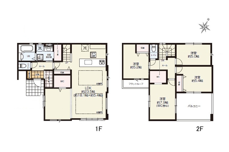 1階 LDK23.5畳 / 2階 洋室7.9畳 / 2階 洋室5.4畳 / 2階 洋室5.2畳 / 2階 洋室5.0畳 |