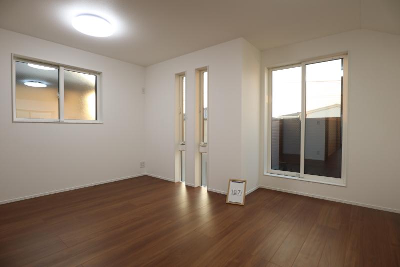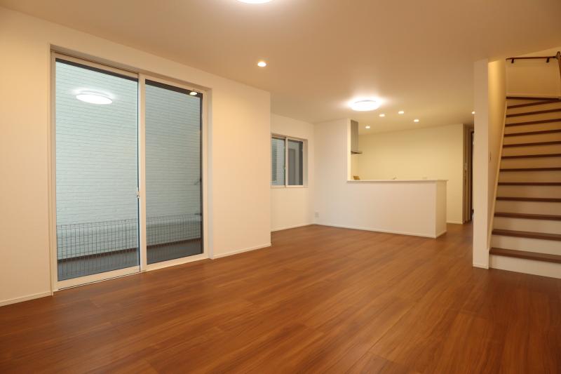 新築×全7棟分譲地の整った街並みで安心の住環境です。最終1棟3号棟のみ!約19.6帖の広々LDK、リビング階段と対面キッチンで会話も弾みます。リビングダイニングには足元ぽかぽか床暖房完備。洗面室には衣類乾燥機付きです。