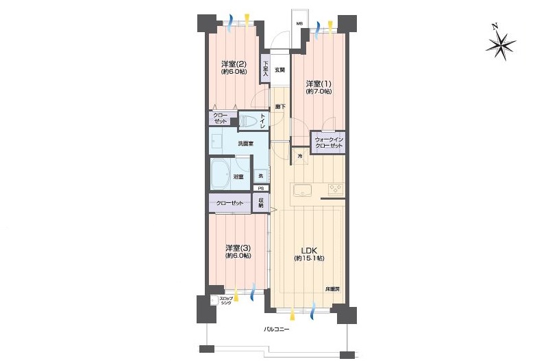 | 間取内容 | LDK15.1畳 / 洋室6.0畳 / 洋室7.0畳 / 洋室6.0畳 | ||