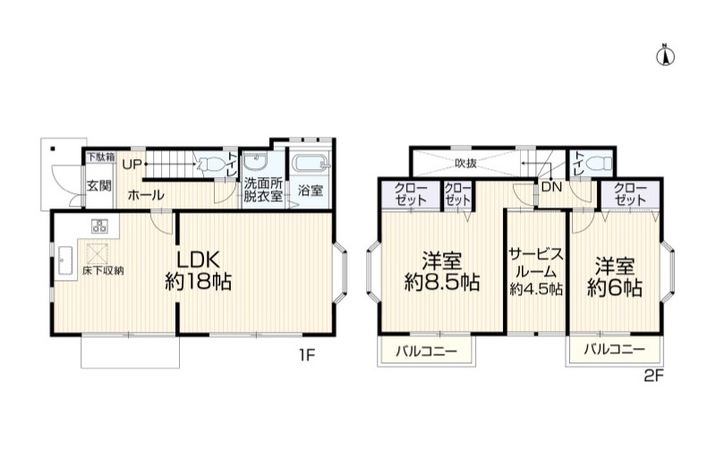 1階 LDK18畳 / 2階 洋室8.5畳 / 2階 洋室6畳 / 2階 S4.5畳 |