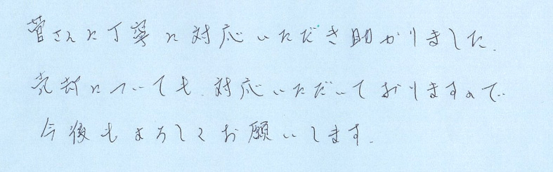丁寧に対応いただき助かりました。2018年3月 | Y様