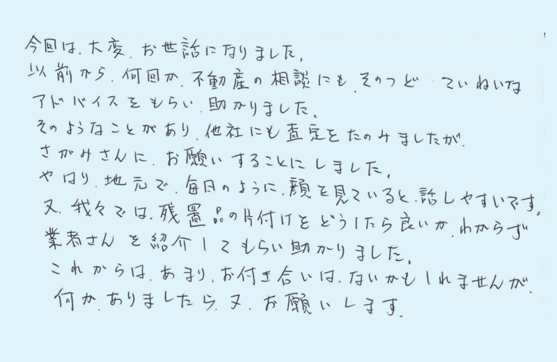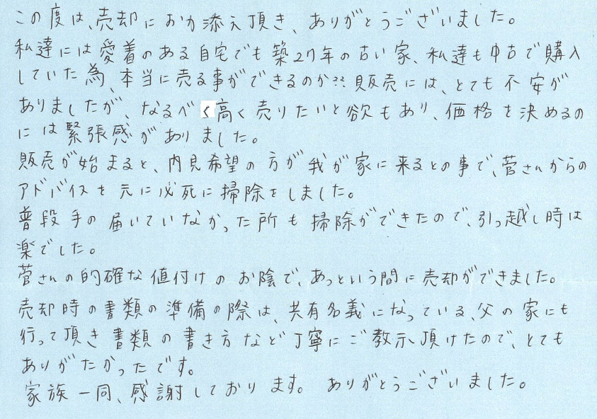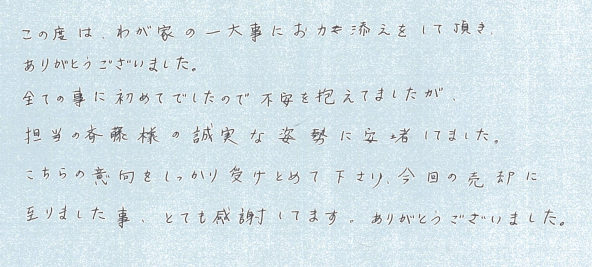 両親の思いが籠もった実家を売却するという事は大きな決断でした。2020年8月 | O様