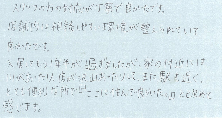 トントン拍子に話が進み、約二ヶ月で入居できました。2017年12月 | M様