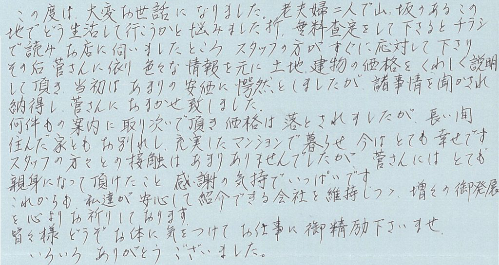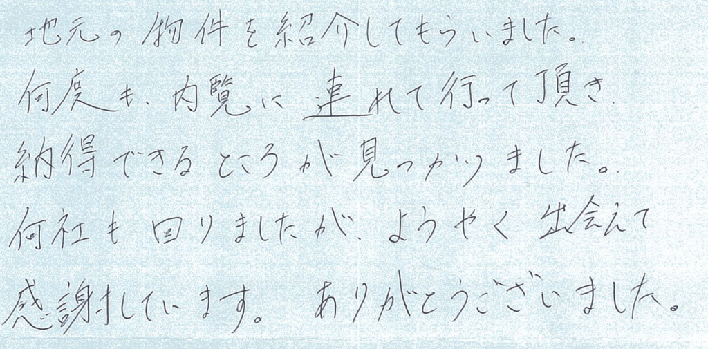 まさに「地域密着型」と呼ぶにふさわしい不動産屋さんだと思います。2021年3月 | K様