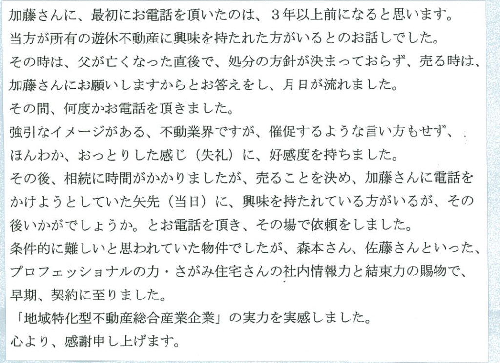 「地域特化型不動産総合産業企業」の実力を実感しました。2017年7月 | Y様