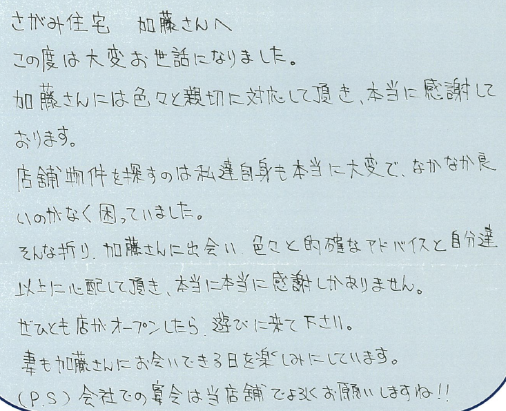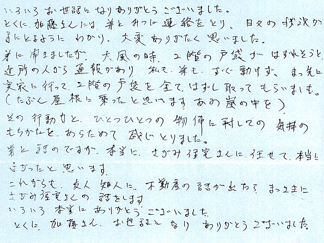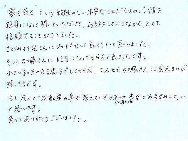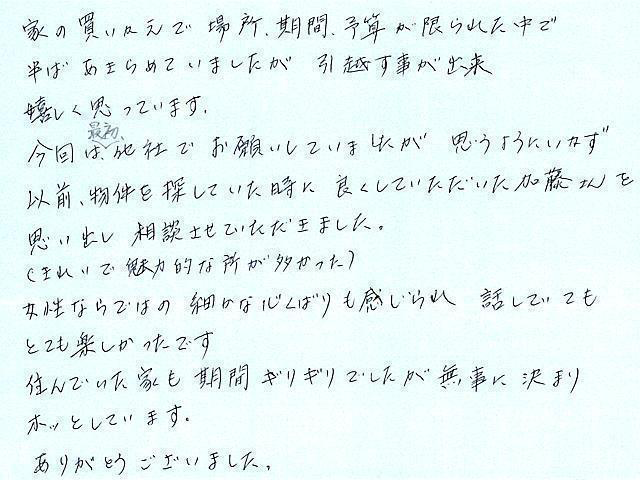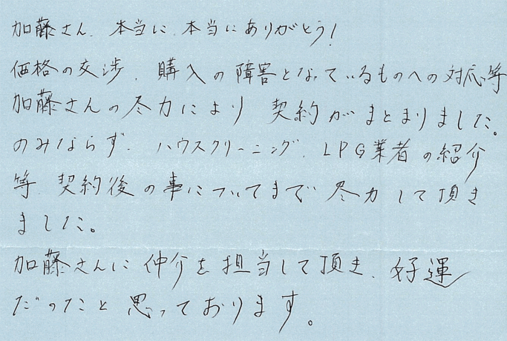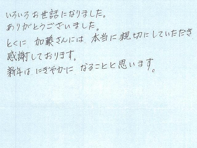 何から何までよく連絡をくれながら処理された加藤さんには感謝をしております。2017年1月 | T様