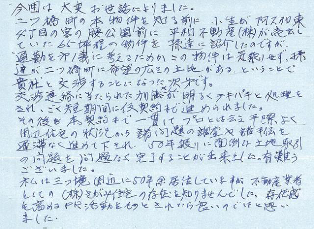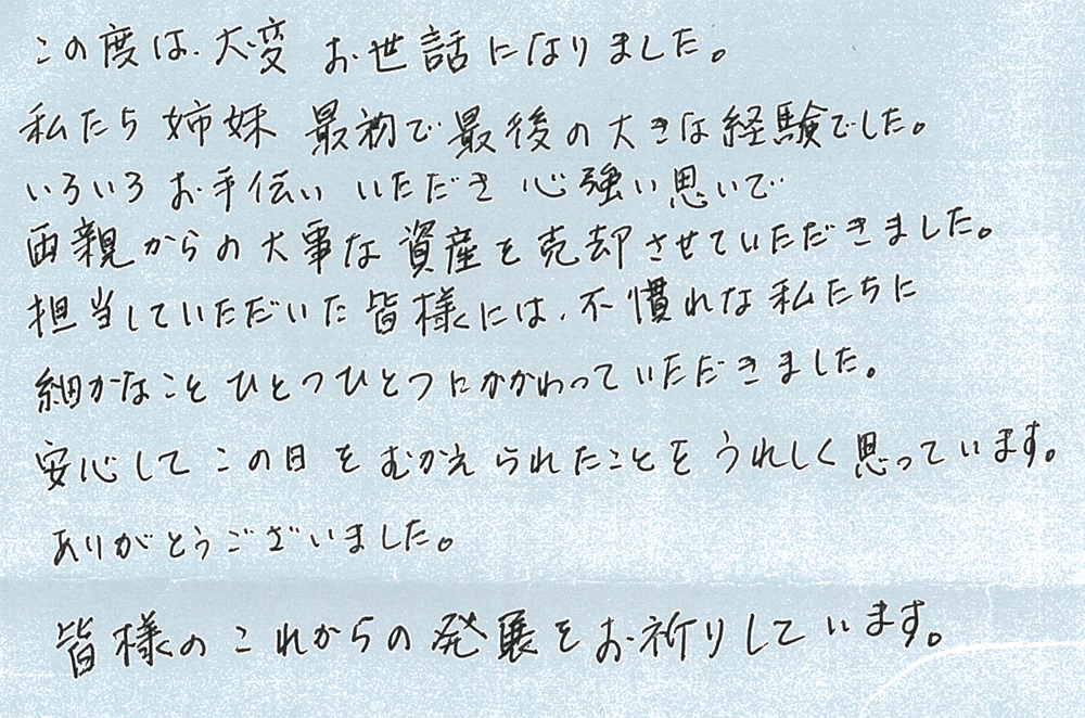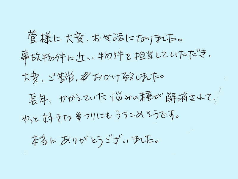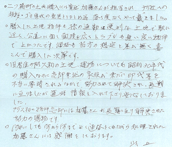 50年ぶりに、面倒な土地取引の問題を滞りなく完了できました。2015年3月 | T様