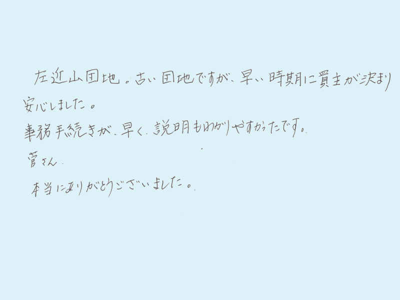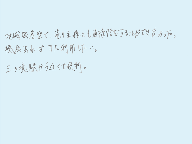 地域密着型で売り主様とも直接話をすることができ良かった。2021年1月 | K様