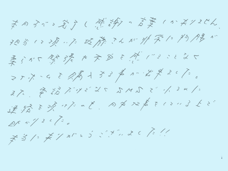 親切丁寧な対応に感謝しております。2020年2月 | I様