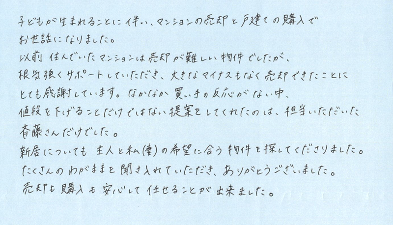 正直マンションがこんなに早く売れるとは思いませんでした。2021年3月 | S様